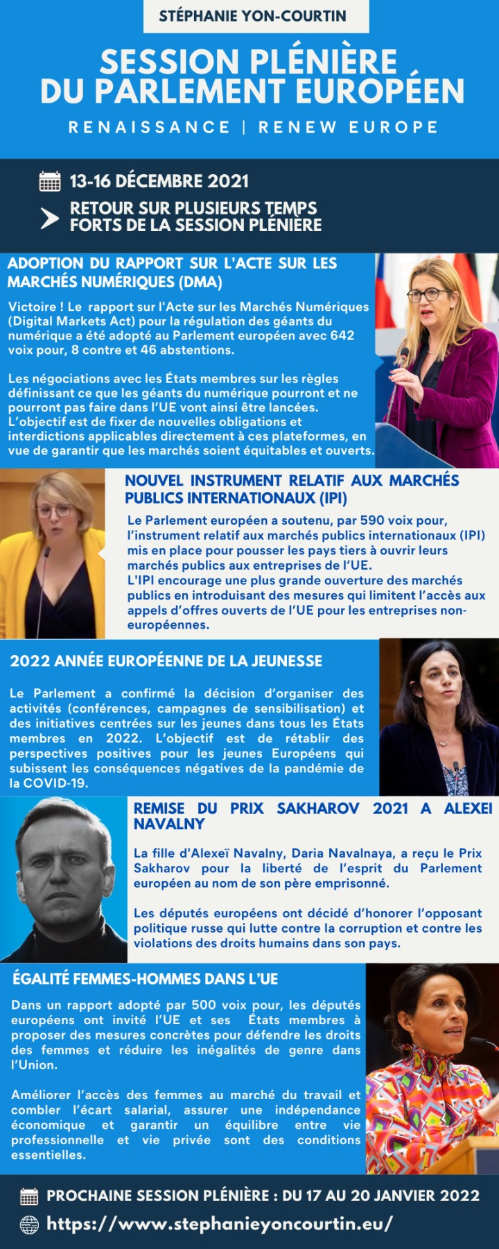 Récapitulatif des temps forts de la session plénière du 13 au 16 décembre 2021 (Strasbourg)