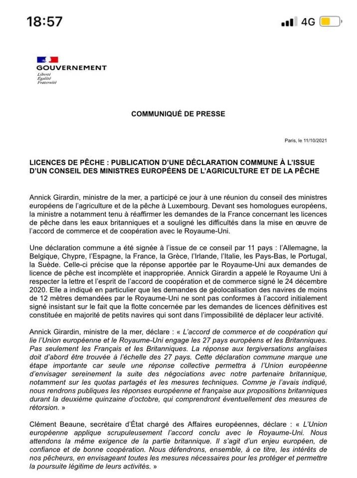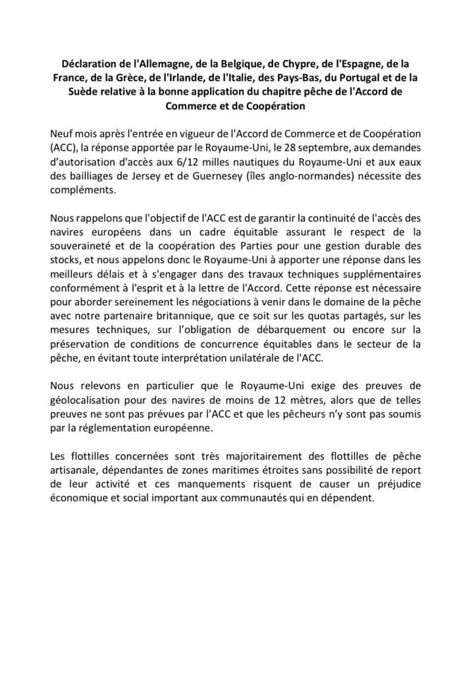 Ce soir, déclaration commune des Ministres européens de la Pêche et de l’Agriculture :