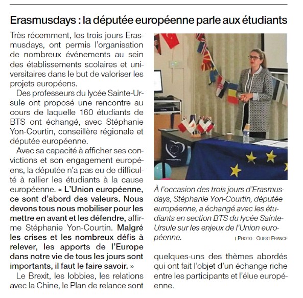 Merci à Ouest France d'avoir relayé ce temps d'échanges avec des élèves du lycée Sainte-Ursule (Caen).